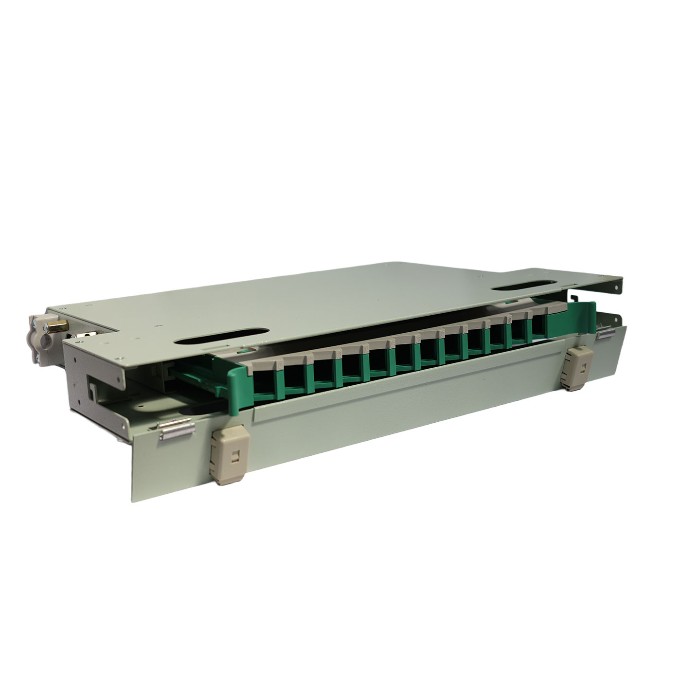Organizador de fibra óptica utilizado en redes de distribución. Configurable con 12 adaptadores...