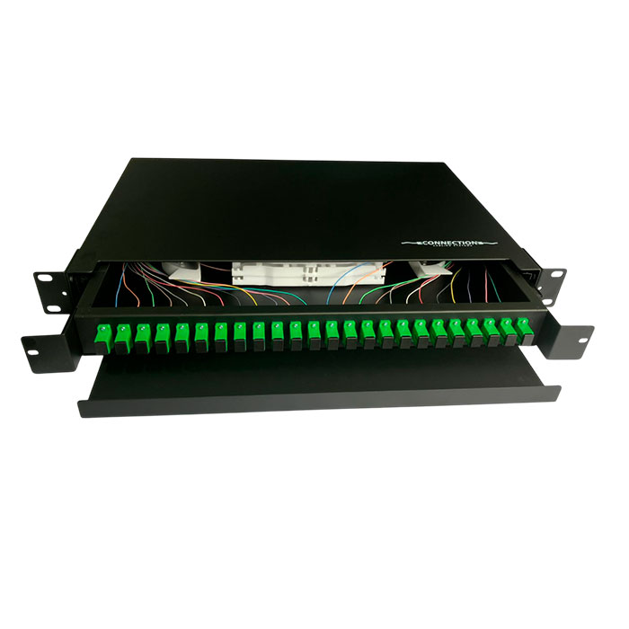 Organizador de fibra óptica utilizado en redes de distribución. Configurable con 24 adaptadores SC simplex ó 24 adaptadores LC dúplex. NO INCLUYE ADAPTADORES NI PIGTAIL