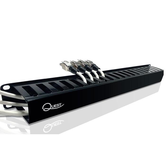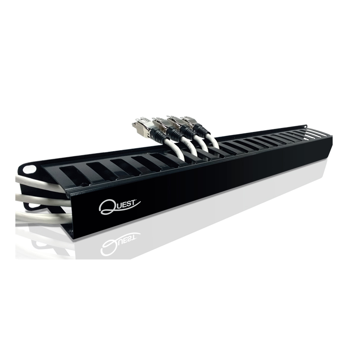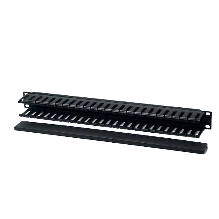 Organizador de 1 UR horizontal para mantener los cables organizados y protegidos.