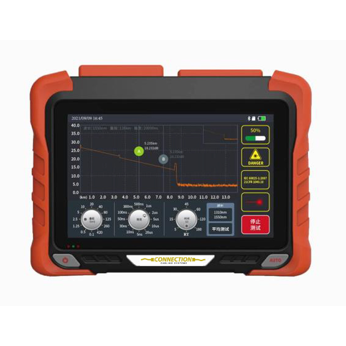 OTDR Monomodo, pantalla touch de 7", trabaja en 1310 y 1550 en Monomodo SM, con una perdida maxima de 38 dB en 1310 y 36 dB en 1550 , cuenta con mapa de eventos, Visualizador visual de fallas VFL, Medidor de Potencia, su cargador es tipo C,