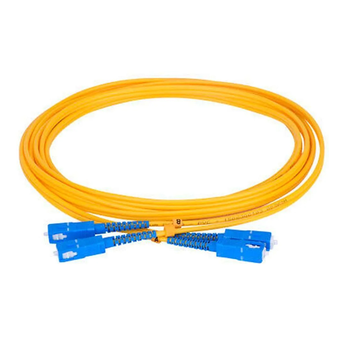 Patchcord duplex de fibra monomodo con conectores SC/APC - SC/UPC, 2 m de longitud. Fabricado con férulas de Zirconia de alta calidad y rendimiento de desconexión no óptica. Son totalmente compatibles con el hardware SC existente. Baja pérdida de inserción, alta pérdida de retorno. Se pueden utilizar en redes LAN/WAN, dispositivos terminales, redes CATV, equipos de telecomunicaciones y datos.