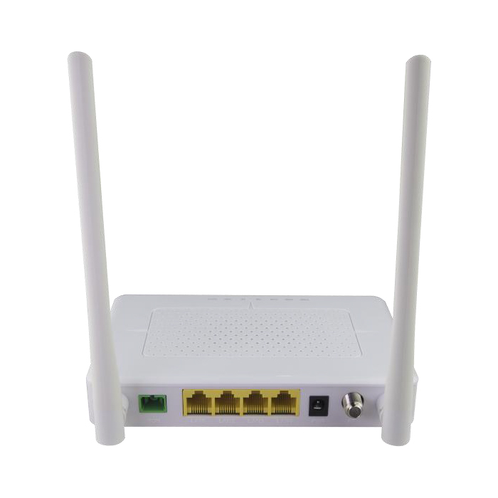 Dispositivo GPON ONU que proporciona acceso de banda ultraancha para usuarios domésticos. Tiene 1 puerto Gigabit Ethernet 3 puertos Fast Ethernet 1 puerto RJ11 para VoIP. Alcanza velocidades de 1.244GB/s en upstream y 2.488 Gb/s en downstream. Tiene funcionalidad WiFi.