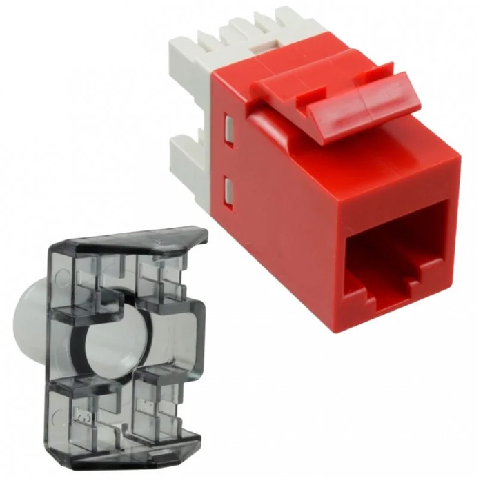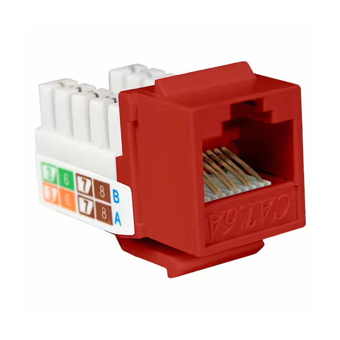 Un jack de categoría 6A rojo es una interfaz física usada para conectar cables de redes en cableado estructurado, que normalmente se usan para enchufar cables con conectores RJ45 en sus extremos. Los jacks RJ45 son usados en faceplates (placas de pared) o en cajetines de red, termina 4 pares 22 a 24 AWG sólido UTP.