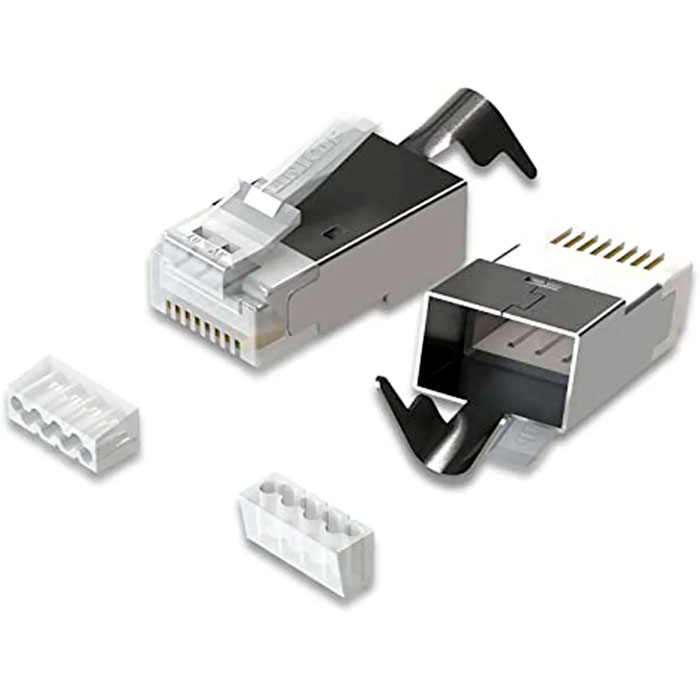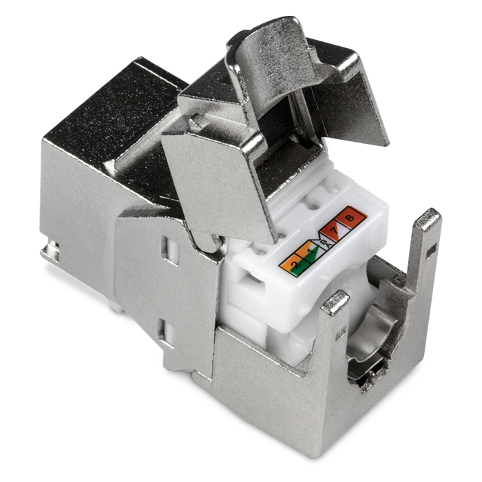 El jack de categoría 6A es un conector modular blindado, que ayudará a aumentar enormemente el rendimiento, tipo IDC trasero mejorado de 180 grados, diseñado y fabricado para cumplir con las exigencias de los estándares internacionales. Con una terminación individual usando conectores de desplazamiento, de aislamiento delgados.