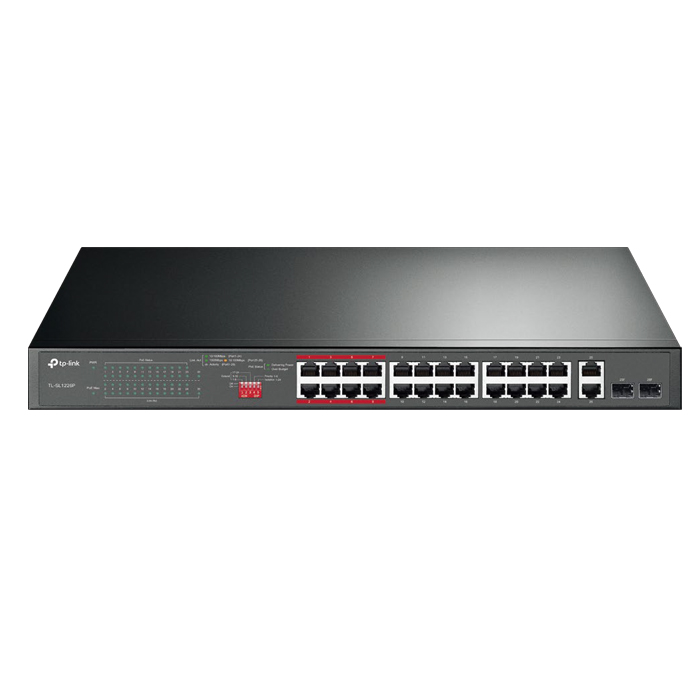 El Switch TL-SL1218MP posee puertos 16/24 PoE+ 10/100 Mbps RJ45, 2 puertos Gigabit...